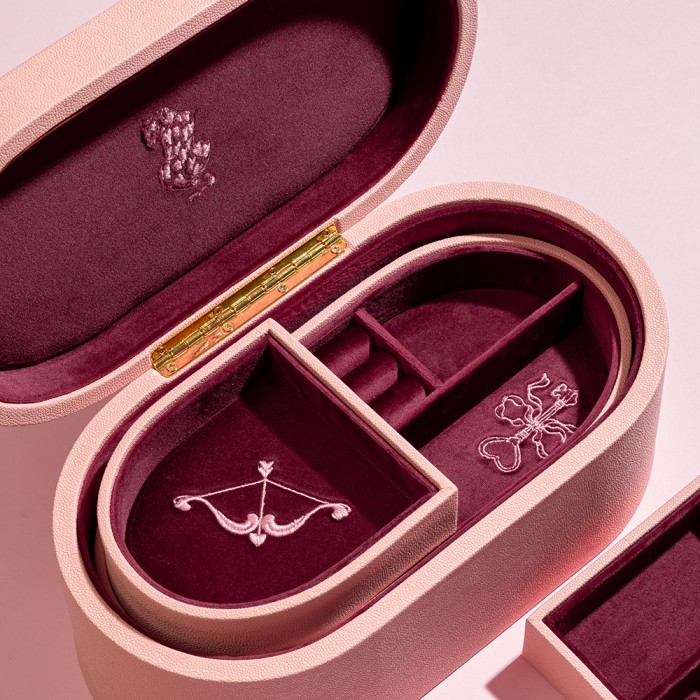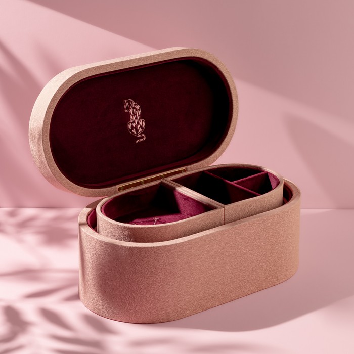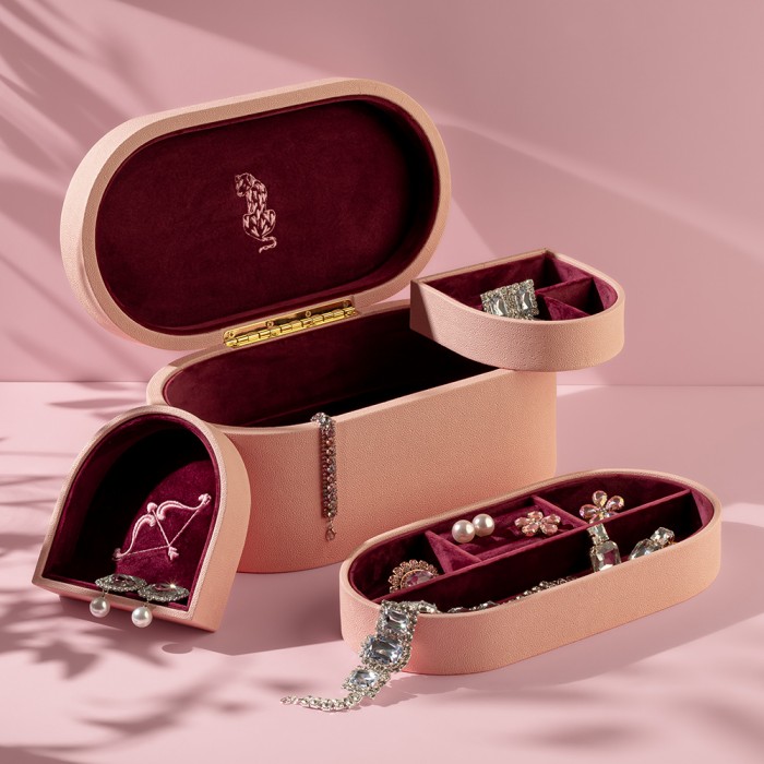 صندوق مجوهرات لؤلؤ جلد وردي فاخر