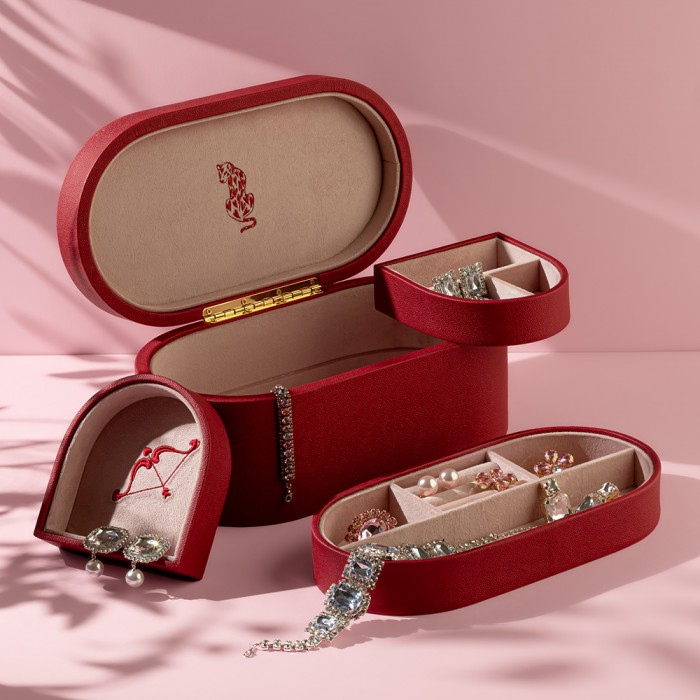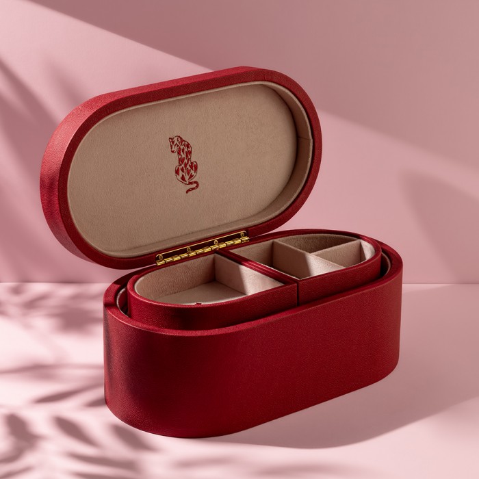 صندوق مجوهرات لؤلؤ جلد أحمر فاخر