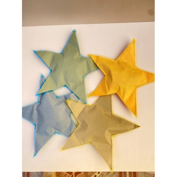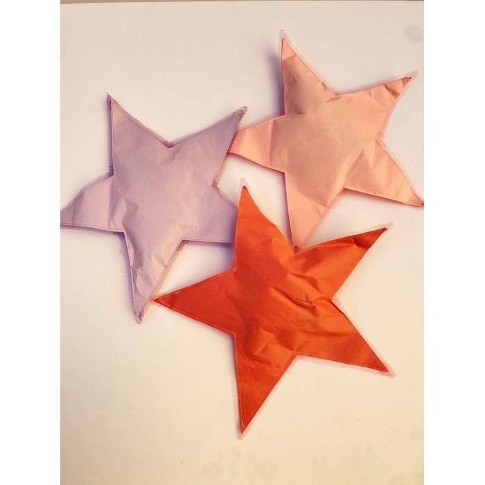 التوزيعات عبارة عن نجوم ورقية مخيطة مع قماش تل
